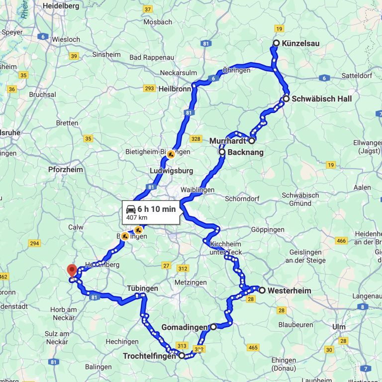 Im Oktober haben wir Schwaben bereist auf einer 3 Tages Tour. Von Künzelsau (Hohenlohe eigentlich) ging es weiter nach Schwäbisch Hall mit erster Übernachtung,